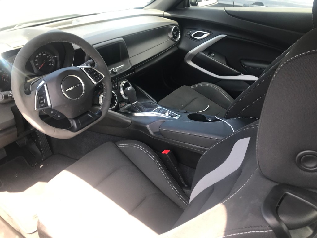 The 1LE Track Performance Package includes a microsuede-wrapped, flat-bottom steering wheel, as well as microsuede on the gear shifter and the top sections of the seat belt receivers. These are the main touch points while driving, and the microsuede finish makes the Camaro feel more special and track-focused than its base-model pricing would suggest.